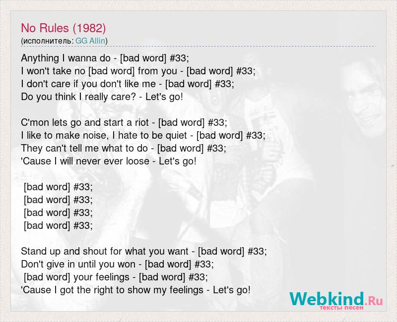 А как ты думаешь, о чем песня "No Rules (1982)" ?
