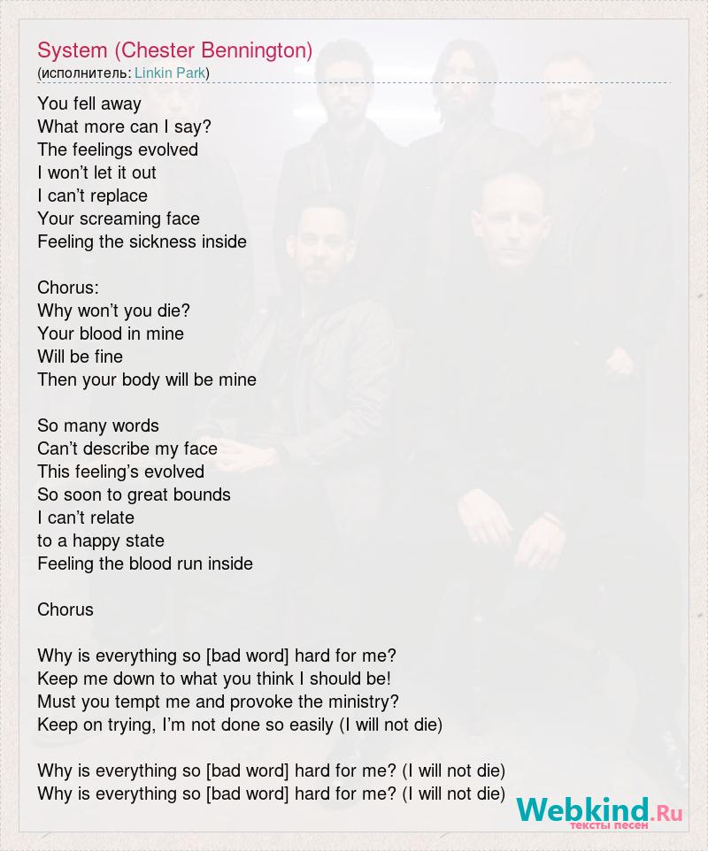 А как ты думаешь, о чем песня "System (Chester Bennington)" ?