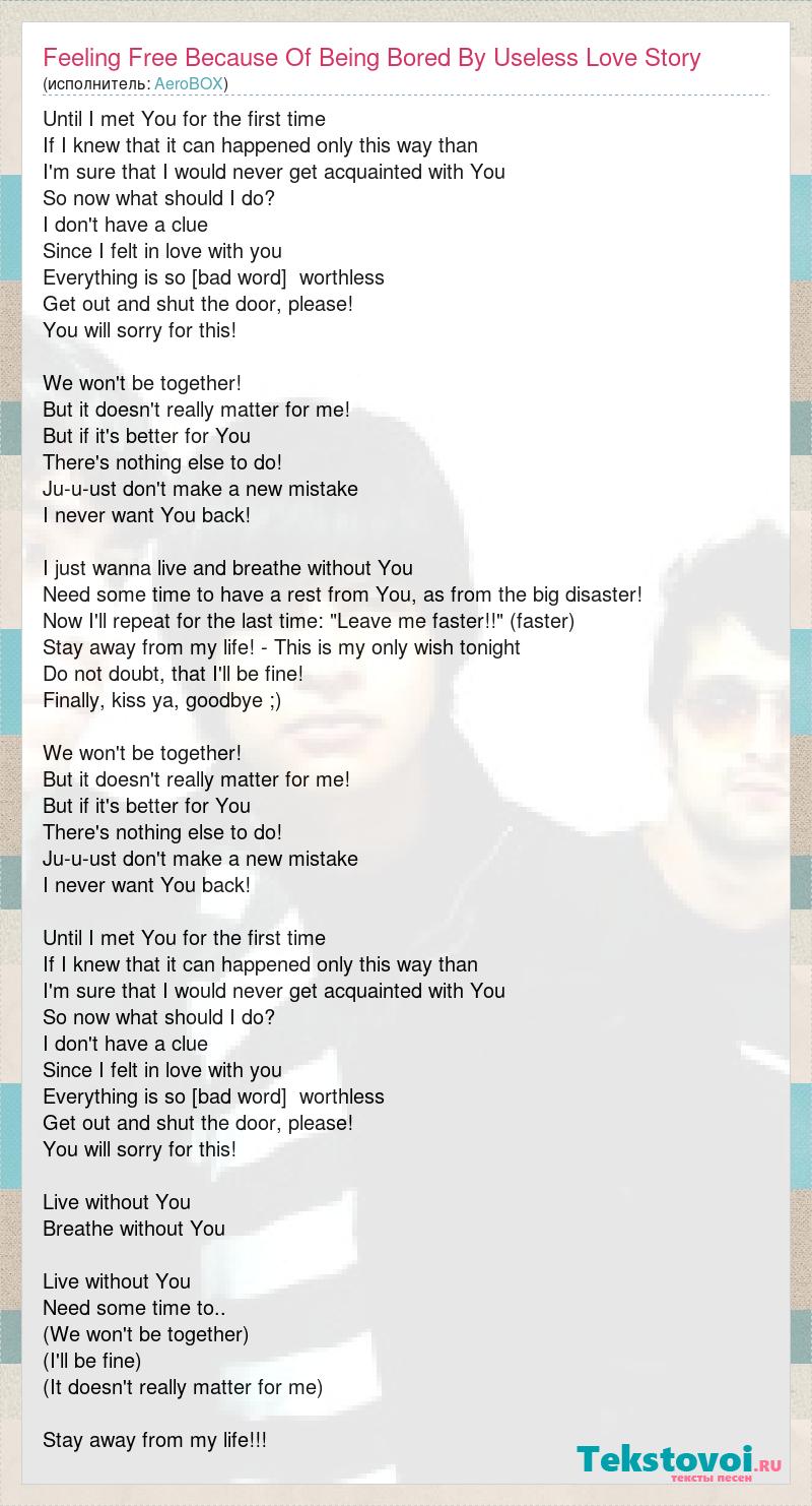 А как ты думаешь, о чем песня "Feeling Free Because Of Being Bored By Useless Love Story" ?