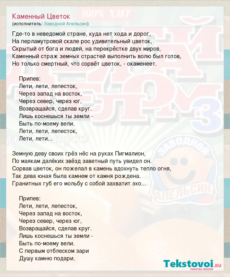 А как ты думаешь, о чем песня "Каменный Цветок" ?