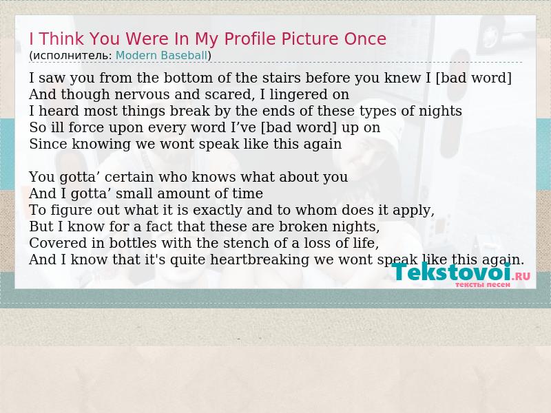 А как ты думаешь, о чем песня "I Think You Were In My Profile Picture Once" ?