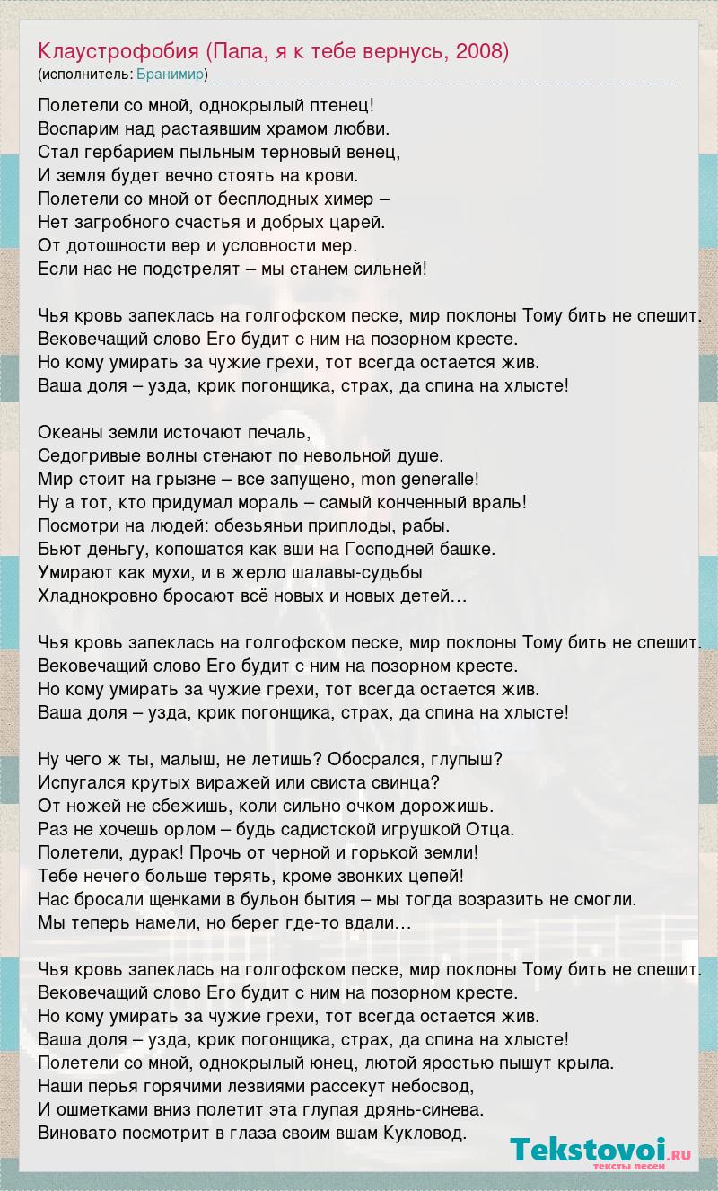 А как ты думаешь, о чем песня "Клаустрофобия (Папа, я к тебе вернусь, 2008)" ?