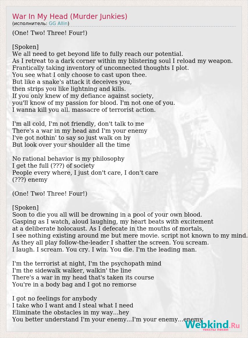 А как ты думаешь, о чем песня "War In My Head (Murder Junkies)" ?