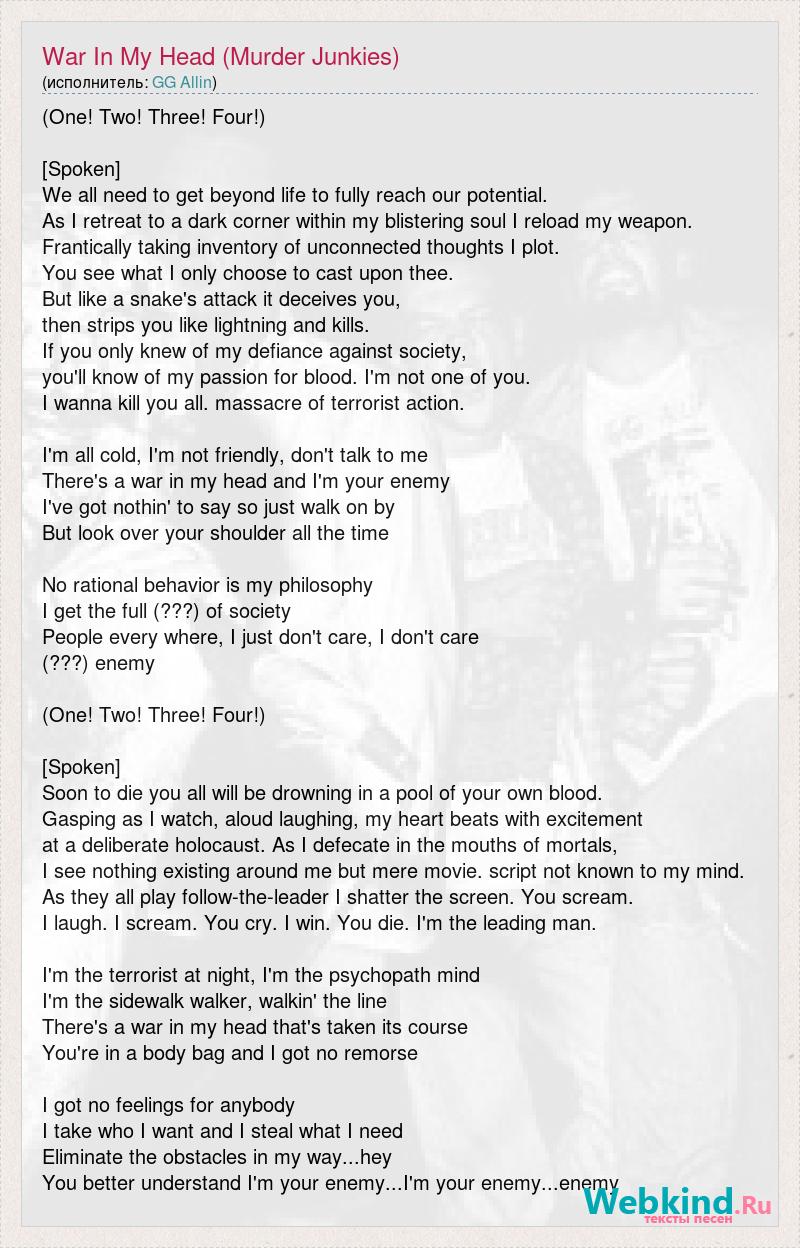 А как ты думаешь, о чем песня "War In My Head (Murder Junkies)" ?
