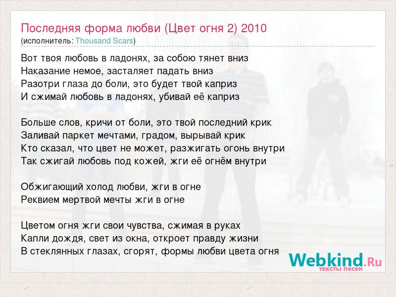 А как ты думаешь, о чем песня "Последняя форма любви (Цвет огня 2) 2010" ?