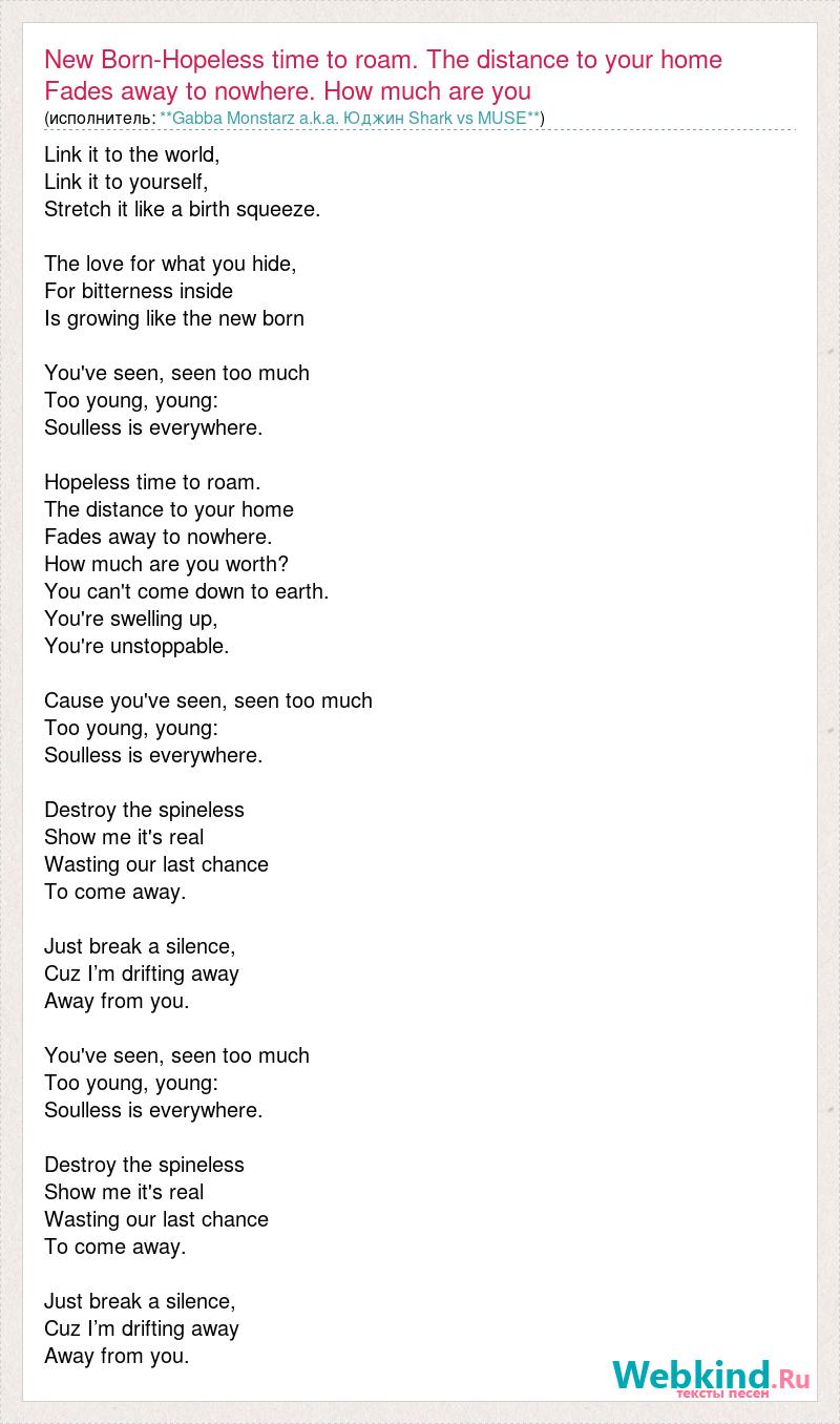 New Born-Hopeless time to roam. The distance to your home Fades away