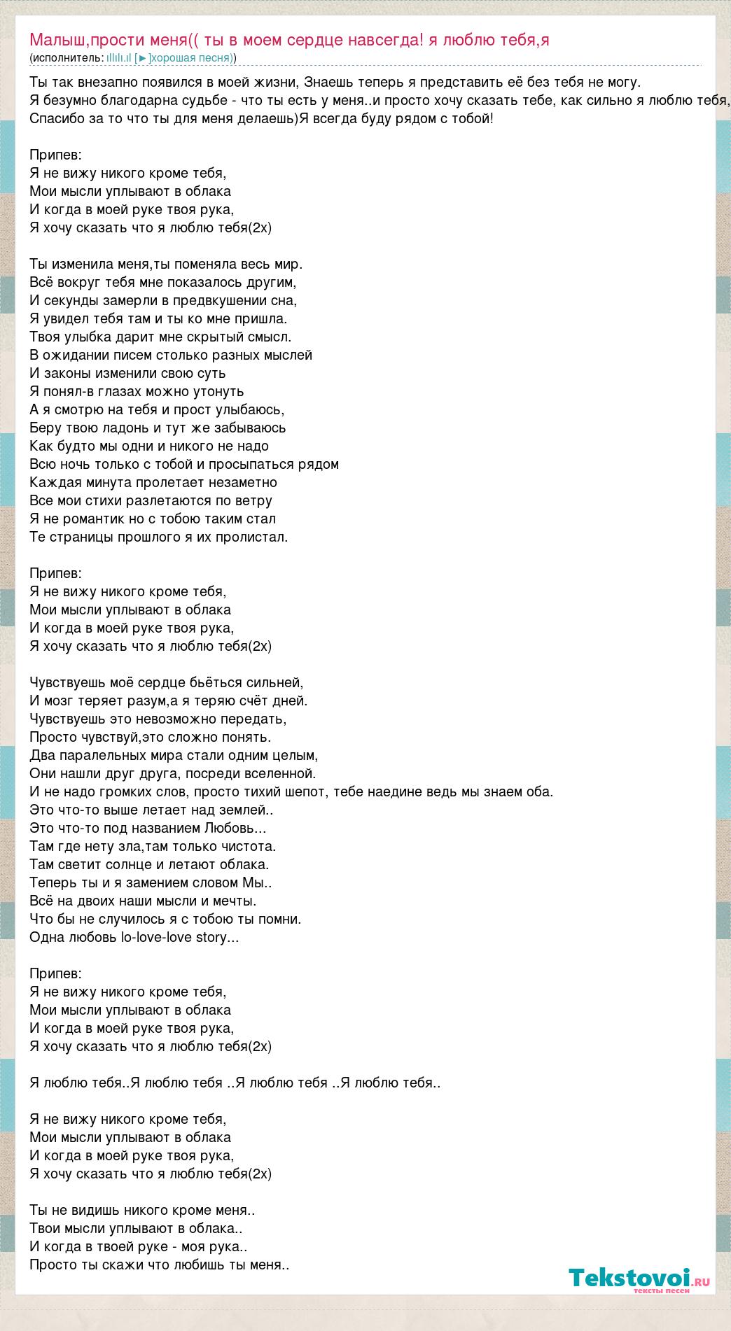 Главная→Исполнители→Ιllιlι.ιl [►]хорошая песня)→Малыш,прости меня(( ты в моем сердце навсегда! я люблю тебя,я дышу тобой,ты мне