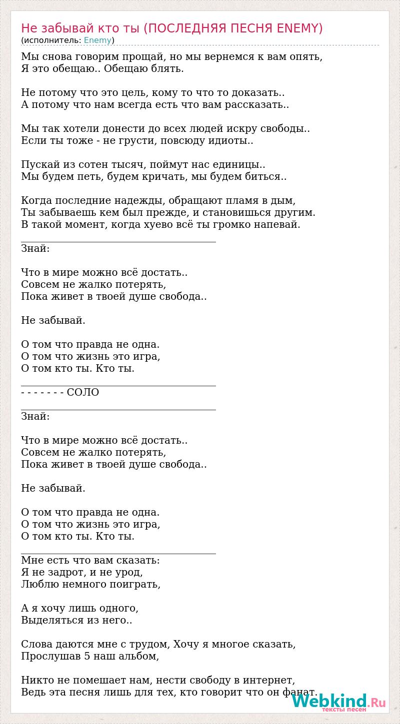 Не забывай кто ты (ПОСЛЕДНЯЯ ПЕСНЯ ENEMY)