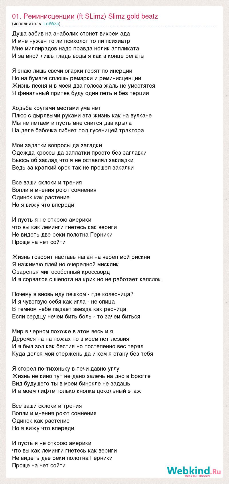 А как ты думаешь, о чем песня "01. Реминисценции (ft SLimz) Slimz gold beatz" ?