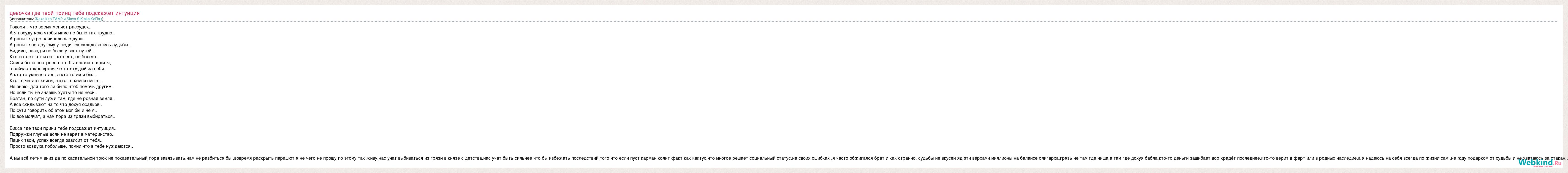 Главная→Исполнители→Жека Кто ТАМ? и Slava SlK aka.КеПа.( Полукот prod.)→Девочка,где твой принц тебе подскажет интуиция