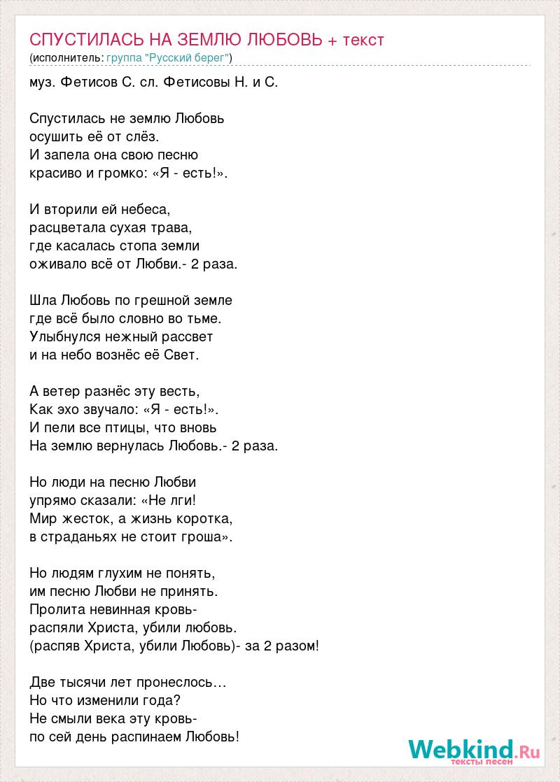 СПУСТИЛАСЬ НА ЗЕМЛЮ ЛЮБОВЬ + текст