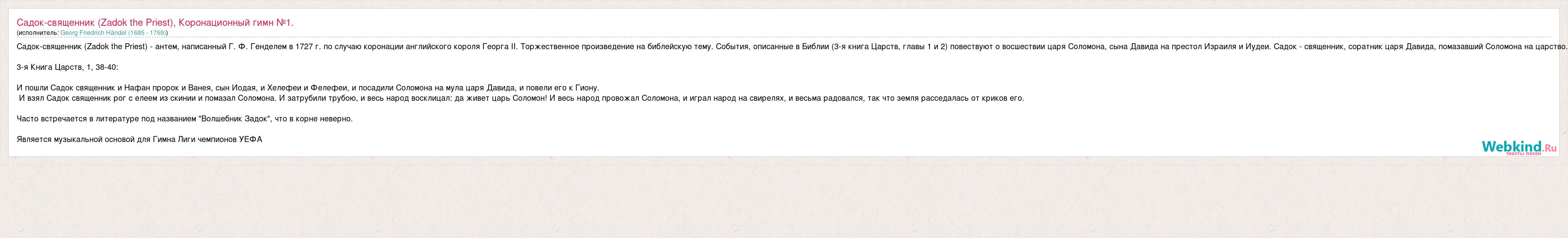 А как ты думаешь, о чем песня "Садок-священник (Zadok the Priest), Коронационный гимн №1." ?