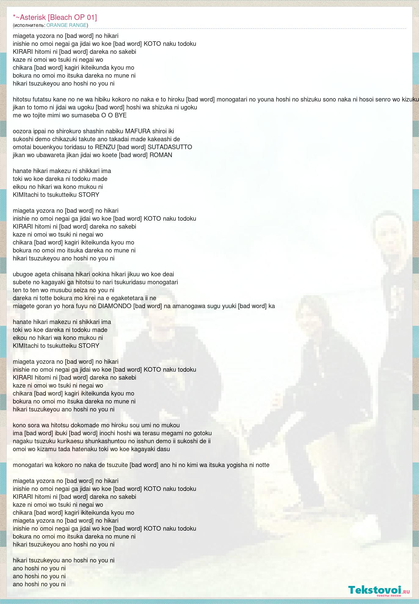 А как ты думаешь, о чем песня "*~Asterisk [Bleach OP 01]" ?
