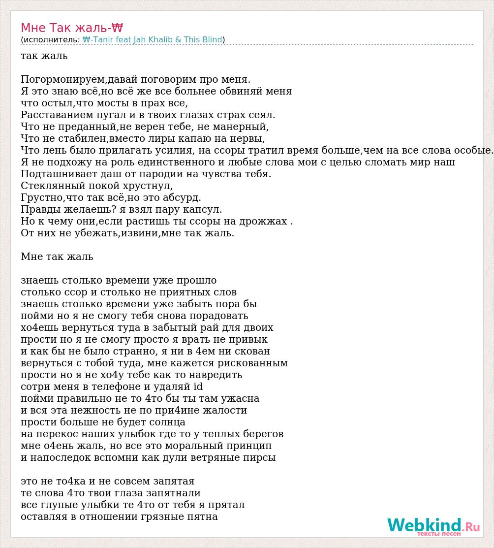 так жаль Погормонируем,давай поговорим про меня. Я это знаю всё,но всё же все больнее обвиняй меня что остыл,что мосты в прах все, Расставанием пугал и в твоих глазах страх сеял. Что не преданный,не верен тебе, не манерный, Что не стабилен,вместо лиры капаю на нервы, Что лень было прилагать усилия, на ссоры тратил время больше,чем на все слова особые. Я не подхожу на роль единственного и любые слова мои с целью сломать мир наш Подташнивает даш от пародии на чувства тебя. Стеклянный покой хрустнул, Грустно,что так всё,но это абсурд. Правды желаешь? я взял пару капсул. Но к чему они,если растишь ты ссоры на дрожжах . От них не убежать,извини,мне так жаль. Мне так жаль знаешь столько времени уже прошло столько ссор и столько не приятных слов знаешь столько времени уже забыть пора бы пойми но я не смогу тебя снова порадовать хо4ешь вернуться туда в забытый рай для двоих прости но я не смогу просто я врать не привык и как бы не было странно, я ни в 4ем ни скован вернуться с тобой туда, мне кажется рискованным прости но я не хо4у тебе как то навредить сотри меня в телефоне и удаляй id пойми правильно не то 4то бы ты там ужасна и вся эта нежность не по при4ине жалости прости больше не будет солнца на перекос наших улыбок где то у теплых берегов мне о4ень жаль, но все это моральный принцип и напоследок вспомни как дули ветряные пирсы это не то4ка и не совсем запятая те слова 4то твои глаза запятнали все глупые улыбки те 4то от тебя я прятал оставляя в отношении грязные пятна