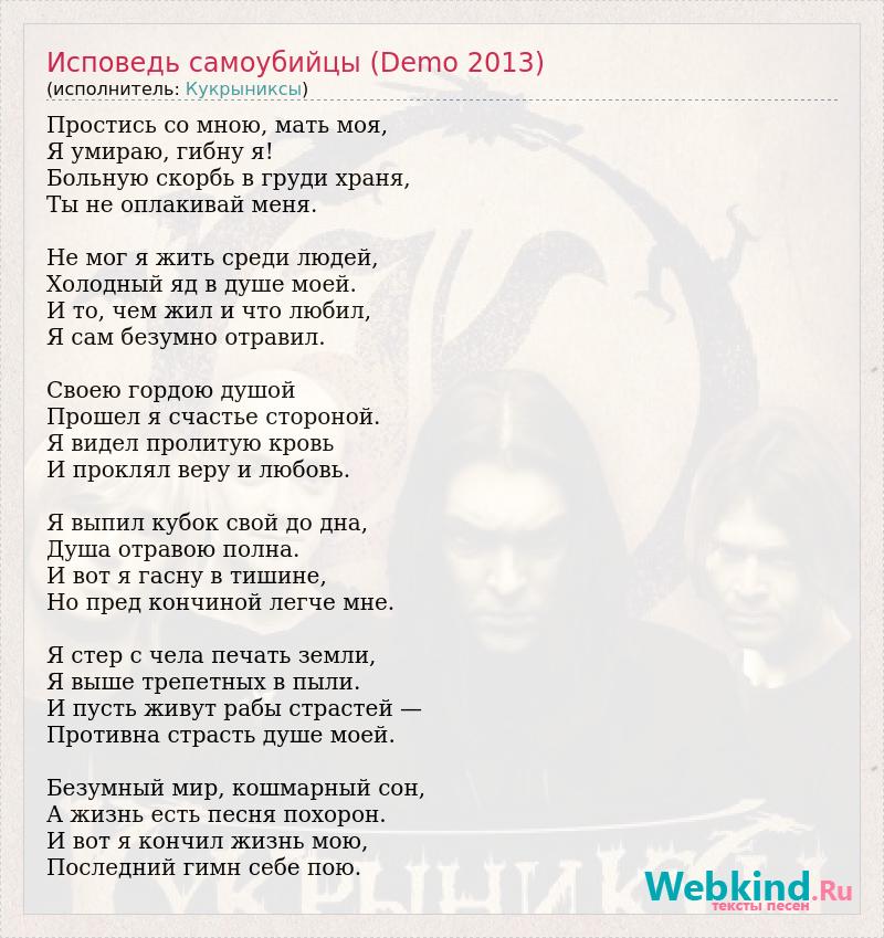 А как ты думаешь, о чем песня "Исповедь самоубийцы (Demo 2013)" ?