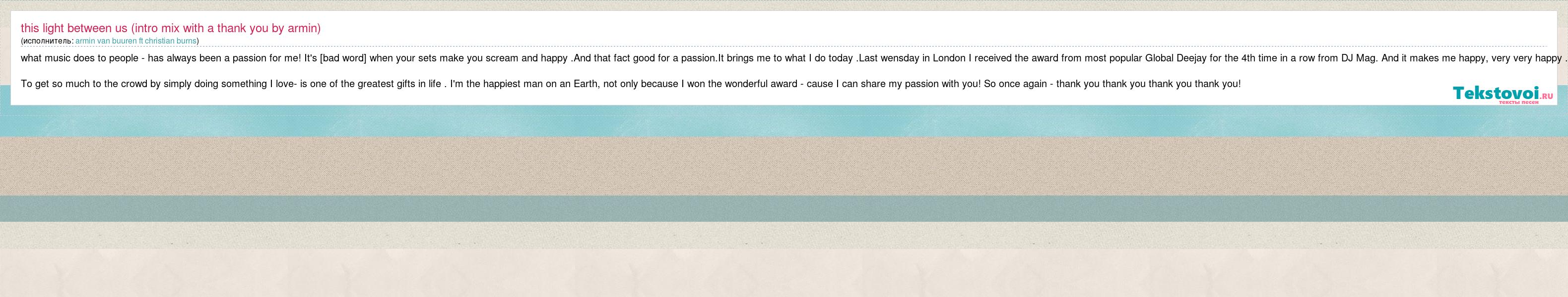 Главная→Исполнители→Armin van buuren ft christian burns→This light between us (intro mix with a thank you by armin)
