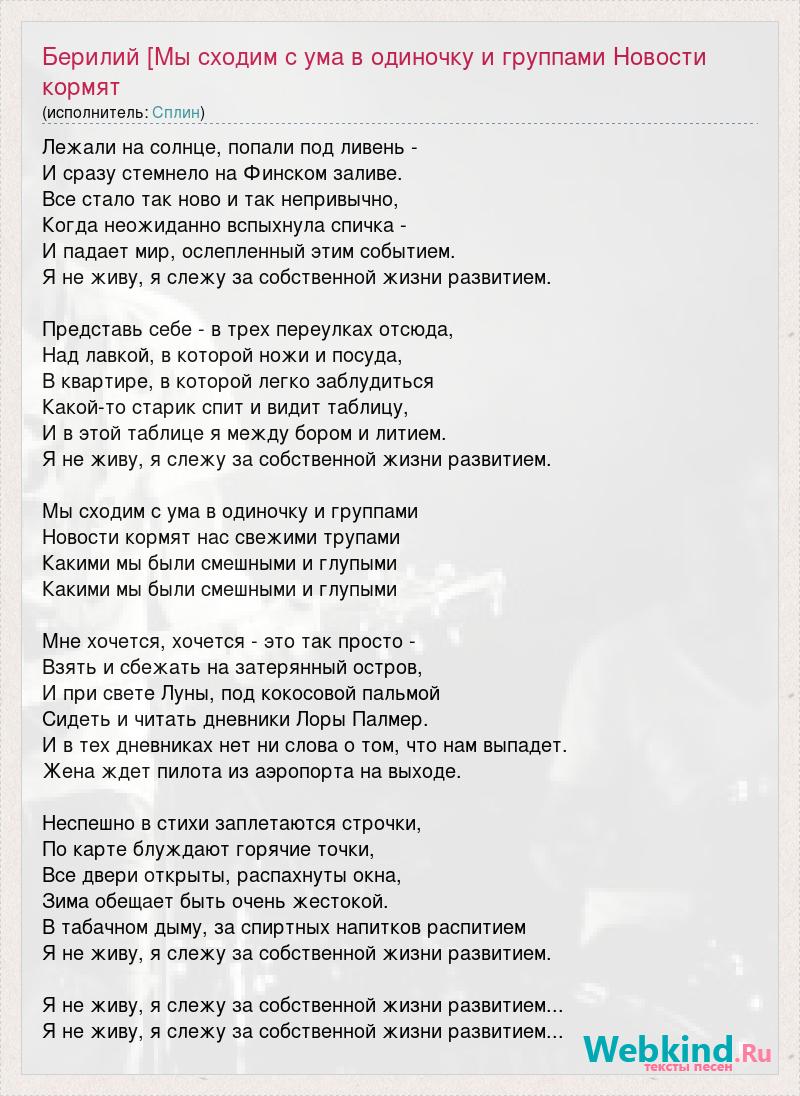 Главная→Исполнители→Сплин→Берилий [Мы сходим с ума в одиночку и группами Новости кормят нас свежими трупам