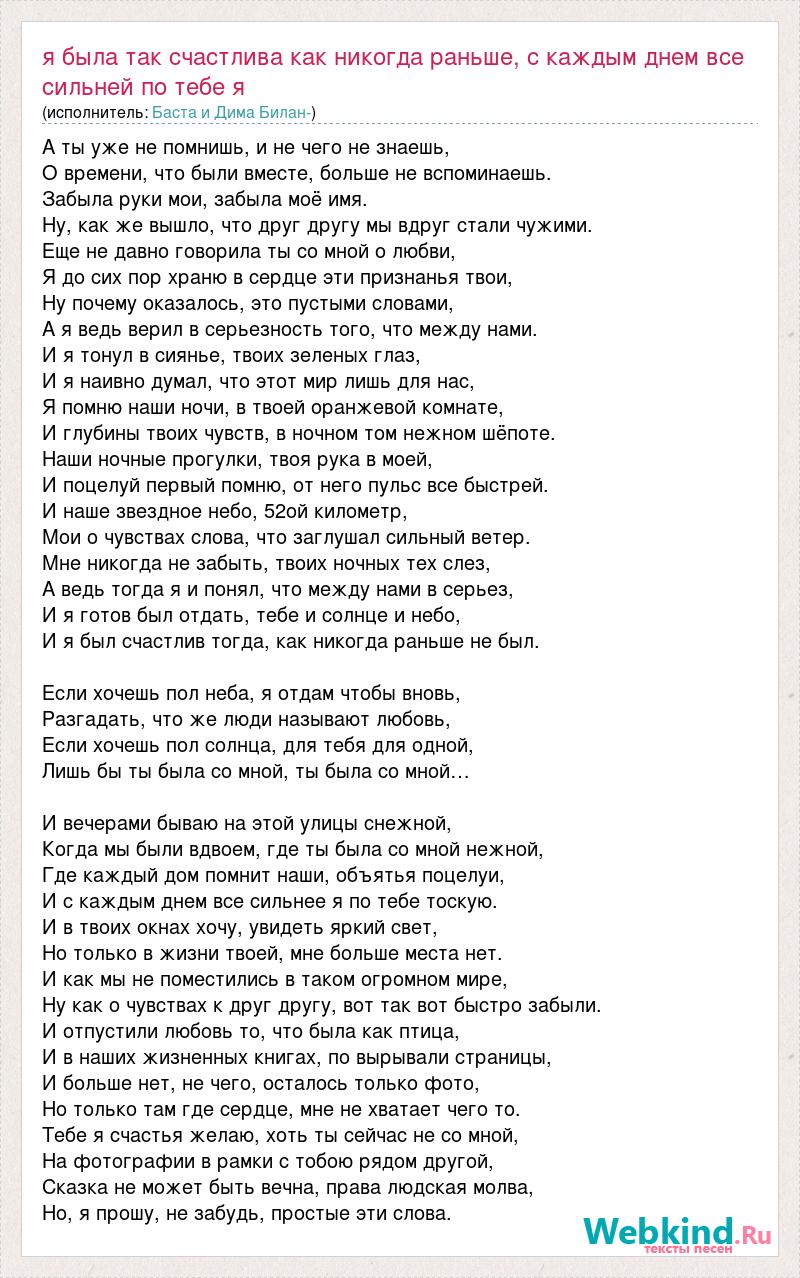Главная→Исполнители→Баста и Дима Билан-→Я была так счастлива как никогда раньше, с каждым днем все сильней по теб