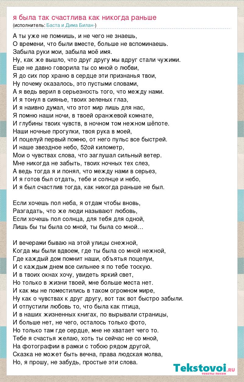 А ты уже не помнишь, и не чего не знаешь, О времени, что были вместе, больше не вспоминаешь. Забыла руки мои, забыла моё имя. Ну, как же вышло, что друг другу мы вдруг стали чужими. Еще не давно говорила ты со мной о любви, Я до сих пор храню в сердце эти признанья твои, Ну почему оказалось, это пустыми словами, А я ведь верил в серьезность того, что между нами. И я тонул в сиянье, твоих зеленых глаз, И я наивно думал, что этот мир лишь для нас, Я помню наши ночи, в твоей оранжевой комнате, И глубины твоих чувств, в ночном том нежном шёпоте. Наши ночные прогулки, твоя рука в моей, И поцелуй первый помню, от него пульс все быстрей. И наше звездное небо, 52ой километр, Мои о чувствах слова, что заглушал сильный ветер. Мне никогда не забыть, твоих ночных тех слез, А ведь тогда я и понял, что между нами в серьез, И я готов был отдать, тебе и солнце и небо, И я был счастлив тогда, как никогда раньше не был. Если хочешь пол неба, я отдам чтобы вновь, Разгадать, что же люди называют любовь, Если хочешь пол солнца, для тебя для одной, Лишь бы ты была со мной, ты была со мной… И вечерами бываю на этой улицы снежной, Когда мы были вдвоем, где ты была со мной нежной, Где каждый дом помнит наши, объятья поцелуи, И с каждым днем все сильнее я по тебе тоскую. И в твоих окнах хочу, увидеть яркий свет, Но только в жизни твоей, мне больше места нет. И как мы не поместились в таком огромном мире, Ну как о чувствах к друг другу, вот так вот быстро забыли. И отпустили любовь то, что была как птица, И в наших жизненных книгах, по вырывали страницы, И больше нет, не чего, осталось только фото, Но только там где сердце, мне не хватает чего то. Тебе я счастья желаю, хоть ты сейчас не со мной, На фотографии в рамки с тобою рядом другой, Сказка не может быть вечна, права людская молва, Но, я прошу, не забудь, простые эти слова.