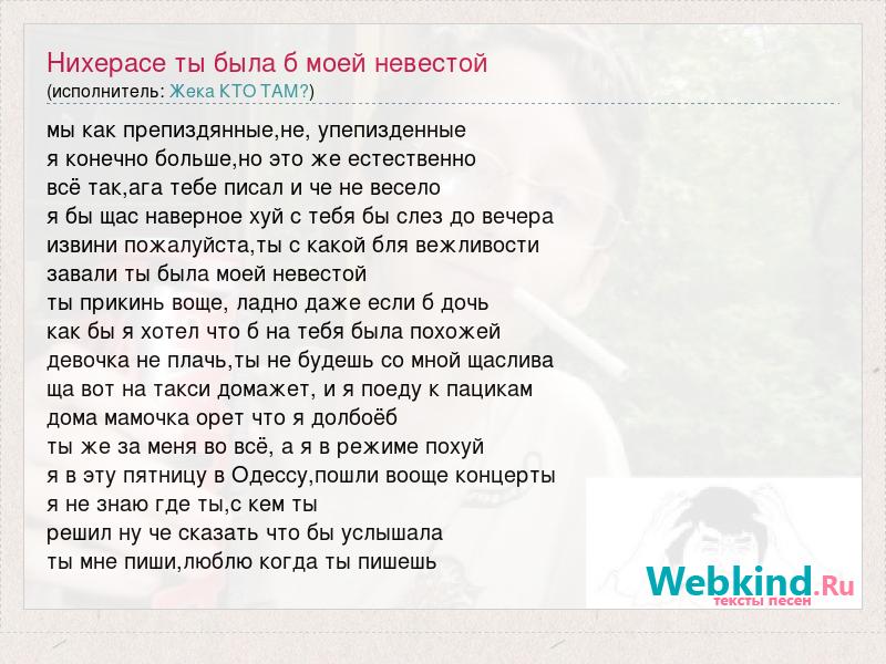 А как ты думаешь, о чем песня "Нихерасе ты была б моей невестой" ?