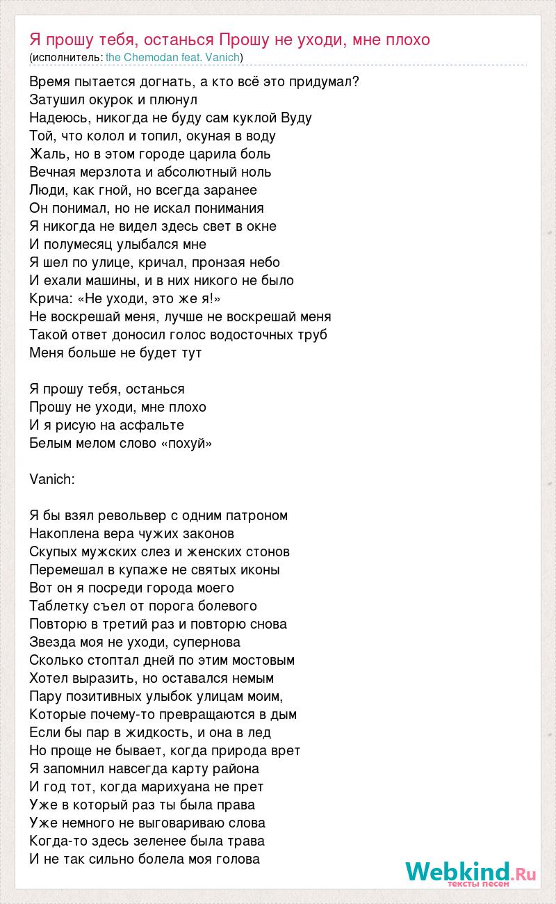 Я прошу тебя, останься Прошу не уходи, мне плохо