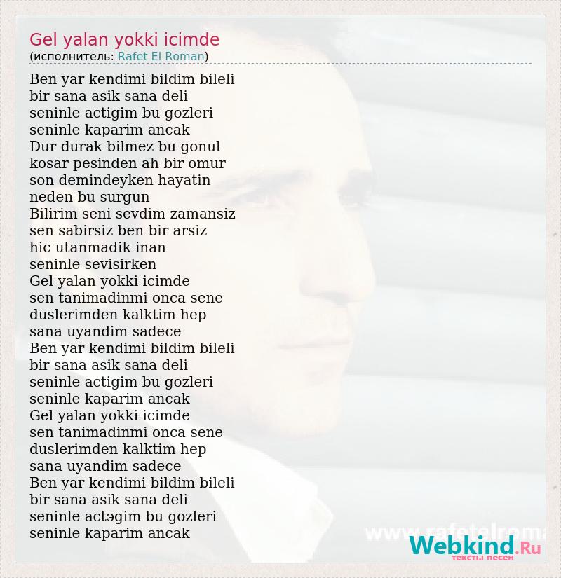 А как ты думаешь, о чем песня "Gel yalan yokki icimde" ?