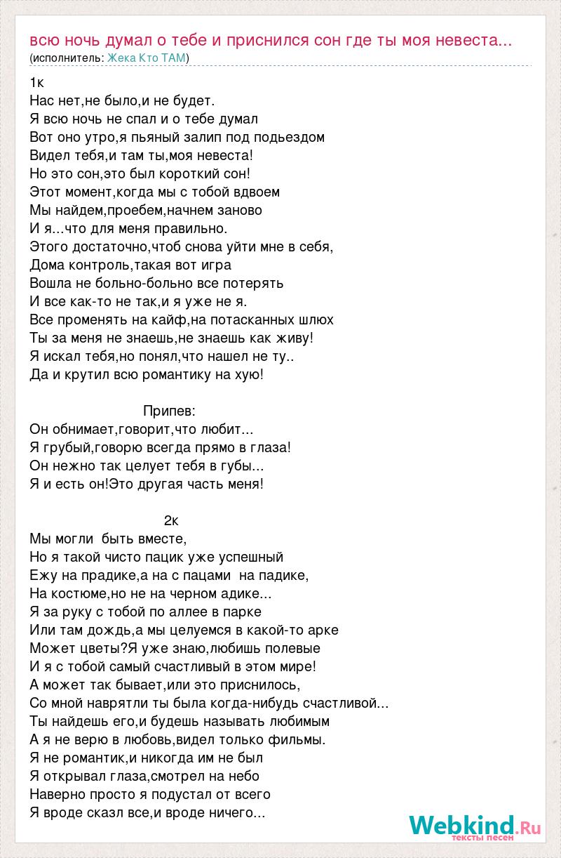 Всю ночь думал о тебе и приснился сон где ты моя невеста...