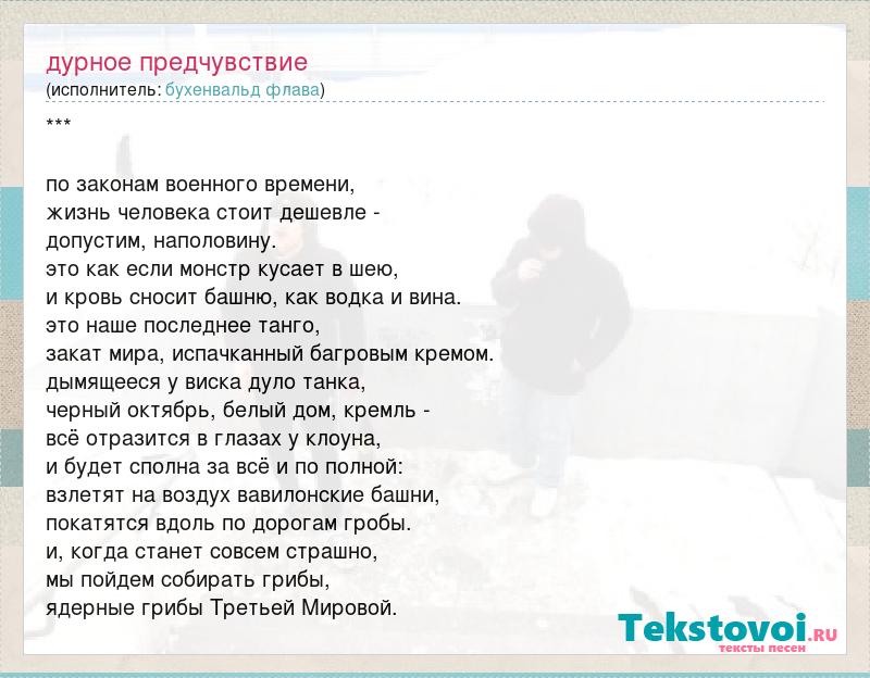 А как ты думаешь, о чем песня "Дурное предчувствие" ?