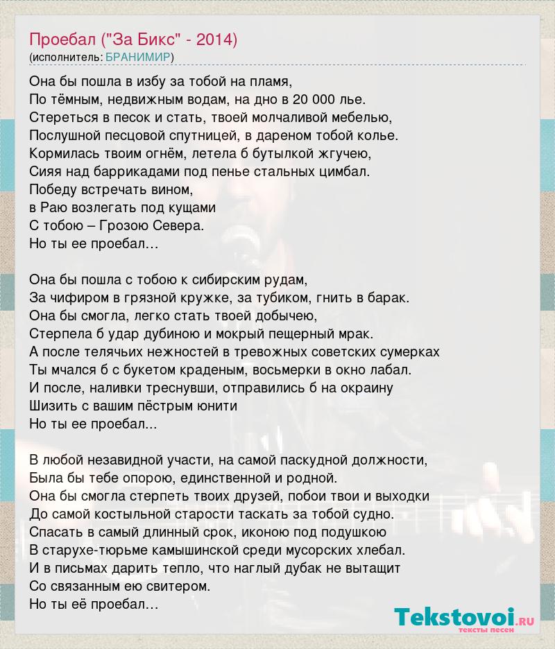 А как ты думаешь, о чем песня "Проебал ("За Бикс" - 2014)" ?