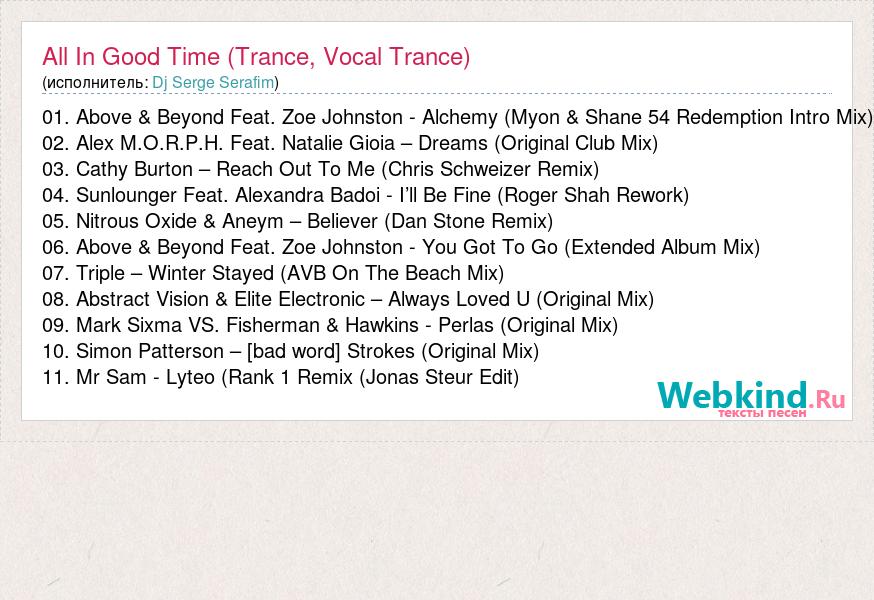 А как ты думаешь, о чем песня "All In Good Time (Trance, Vocal Trance)" ?