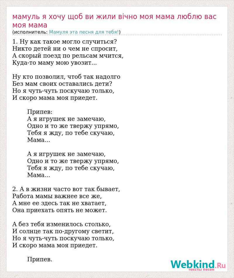 А как ты думаешь, о чем песня "Мамуль я хочу щоб ви жили вічно моя мама люблю вас моя мама" ?