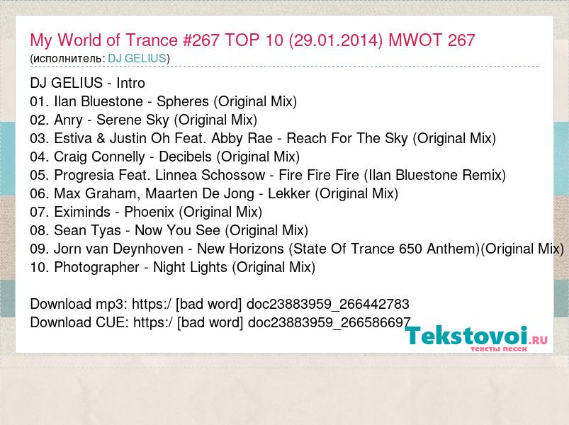 My World of Trance #267 TOP 10 (29.01.2014) MWOT 267