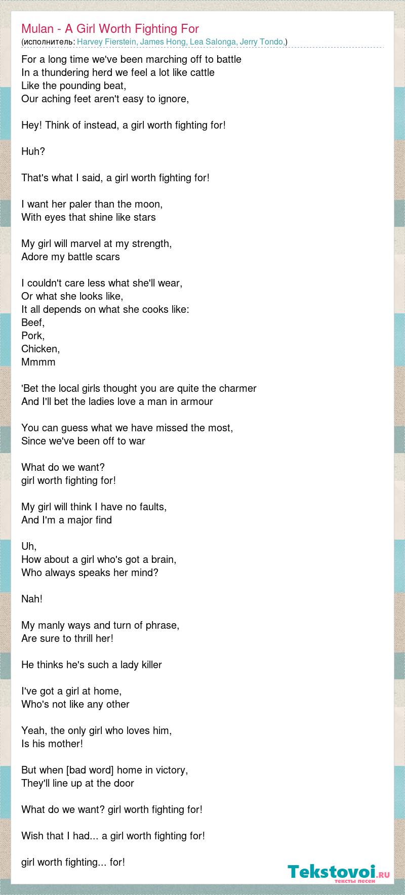 А как ты думаешь, о чем песня "Mulan - A Girl Worth Fighting For" ?