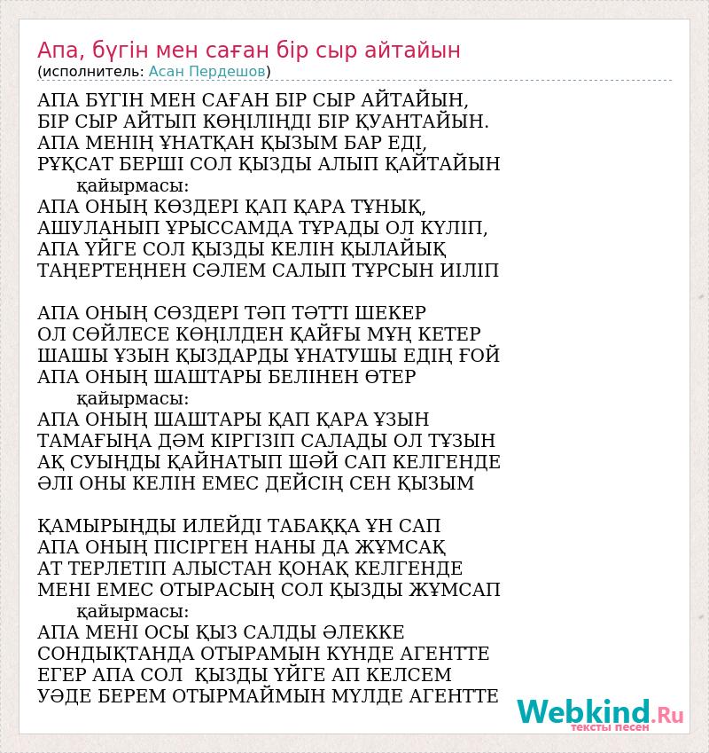 А как ты думаешь, о чем песня "Апа, бүгін мен саған бір сыр айтайын" ?