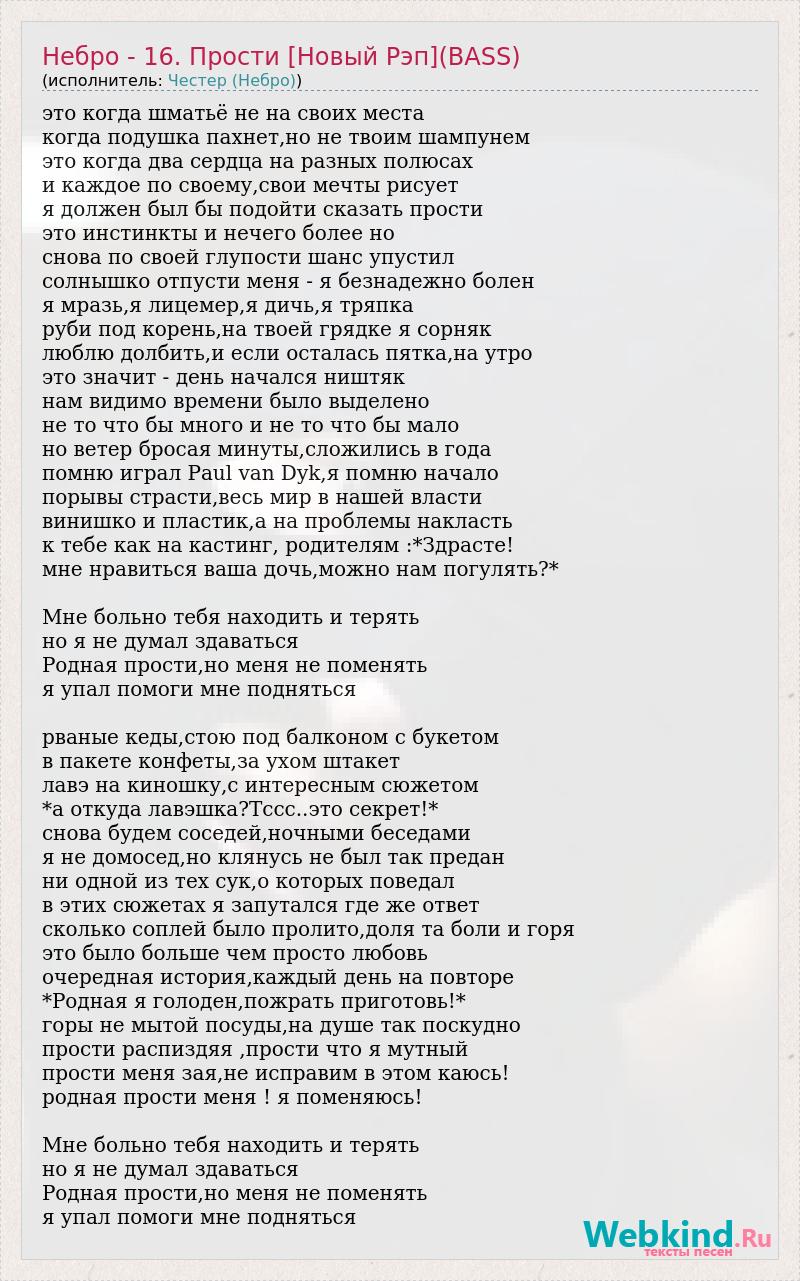 А как ты думаешь, о чем песня "Небро - 16. Прости [Новый Рэп](BASS)" ?