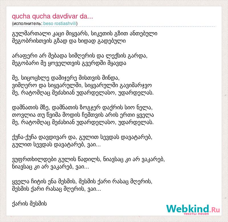 А как ты думаешь, о чем песня "Qucha qucha davdivar da..." ?