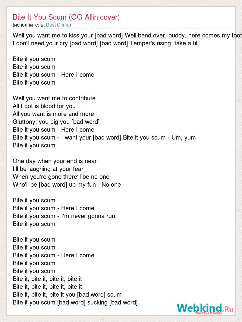 А как ты думаешь, о чем песня "Bite It You Scum (GG Allin cover)" ?