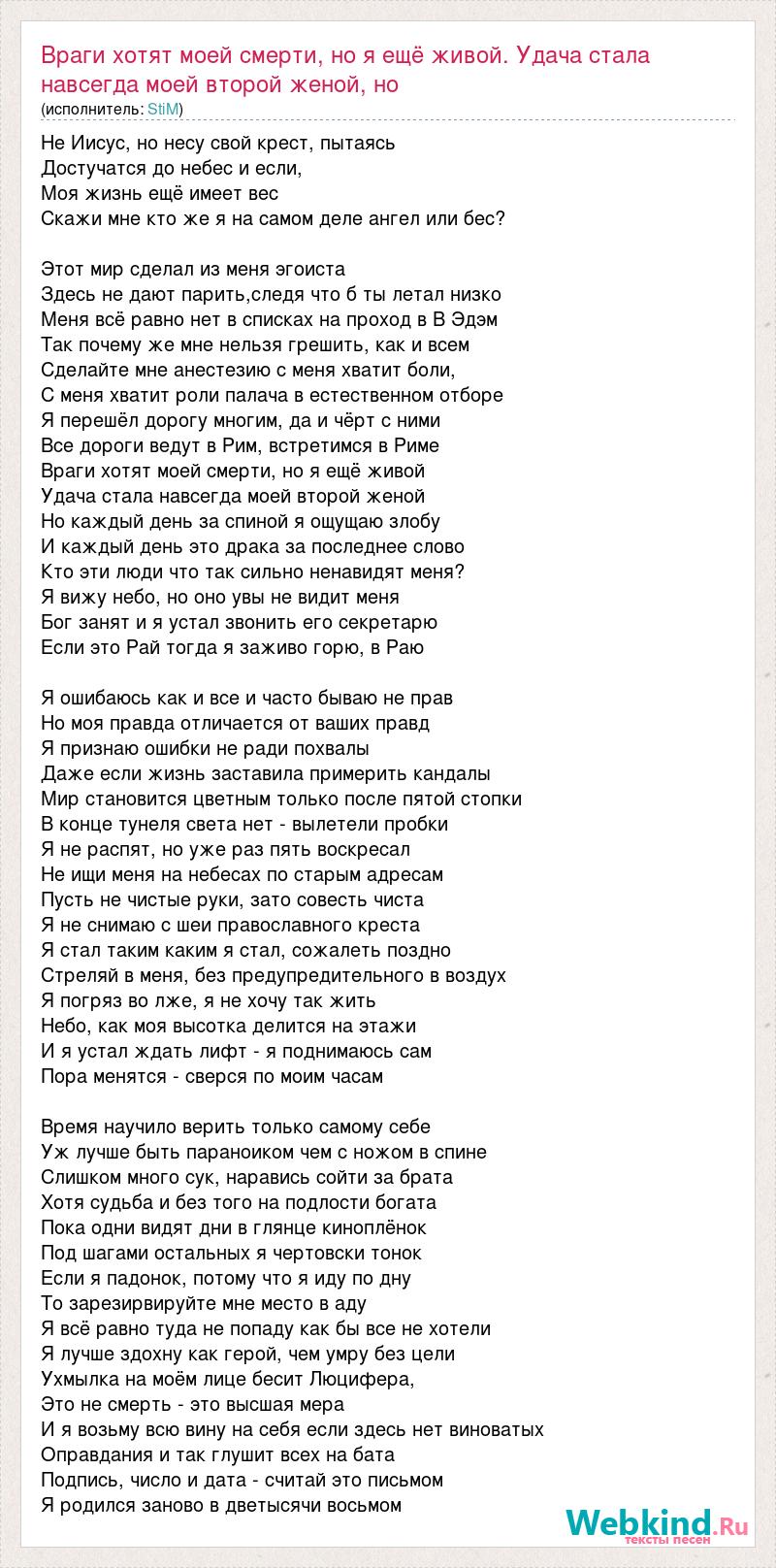 А как ты думаешь, о чем песня "Враги хотят моей смерти, но я ещё живой. Удача стала навсегда моей втор" ?