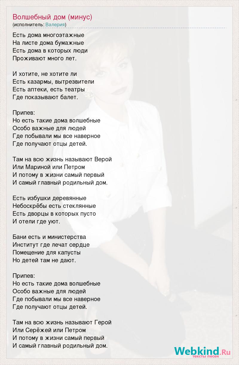 Есть дома многоэтажные На листе дома бумажные Есть дома в которых люди Проживают много лет. И хотите, не хотите ли Есть казармы, вытрезвители Есть аптеки, есть театры Где показывают балет. Припев: Но есть такие дома волшебные Особо важные для людей Где побывали мы все наверное Где получают отцы детей. Там на всю жизнь называют Верой Или Мариной или Петром И потому в жизни самый первый И самый главный родильный дом. Есть избушки деревянные Небоскрёбы есть стеклянные Есть дворцы в которых пусто И отели где уют. Бани есть и министерства Институт где лечат сердце Помещение для капусты Но детей там не дают. Припев: Но есть такие дома волшебные Особо важные для людей Где побывали мы все наверное Где получают отцы детей. Там на всю жизнь называют Герой Или Серёжей или Петром И потому в жизни самый первый И самый главный родильный дом.