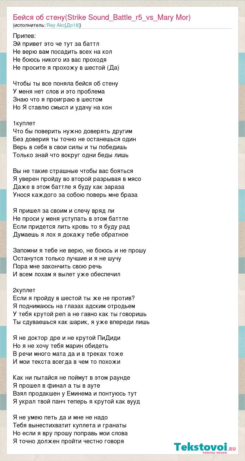 А как ты думаешь, о чем песня "Бейся об стену(Strike Sound_Battle_r5_vs_Mary Mor)" ?