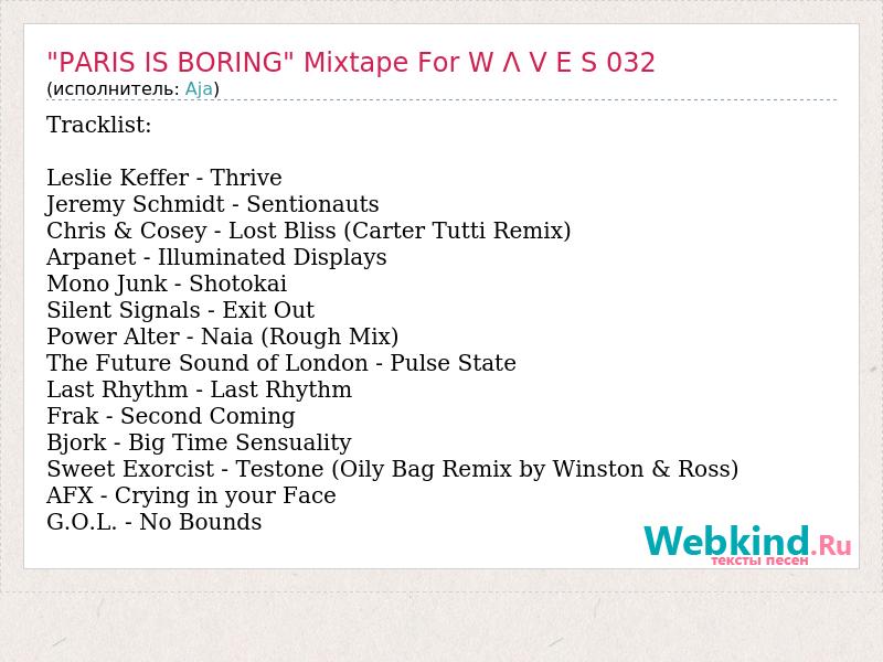 А как ты думаешь, о чем песня ""PARIS IS BORING" Mixtape For W Λ V E S 032" ?