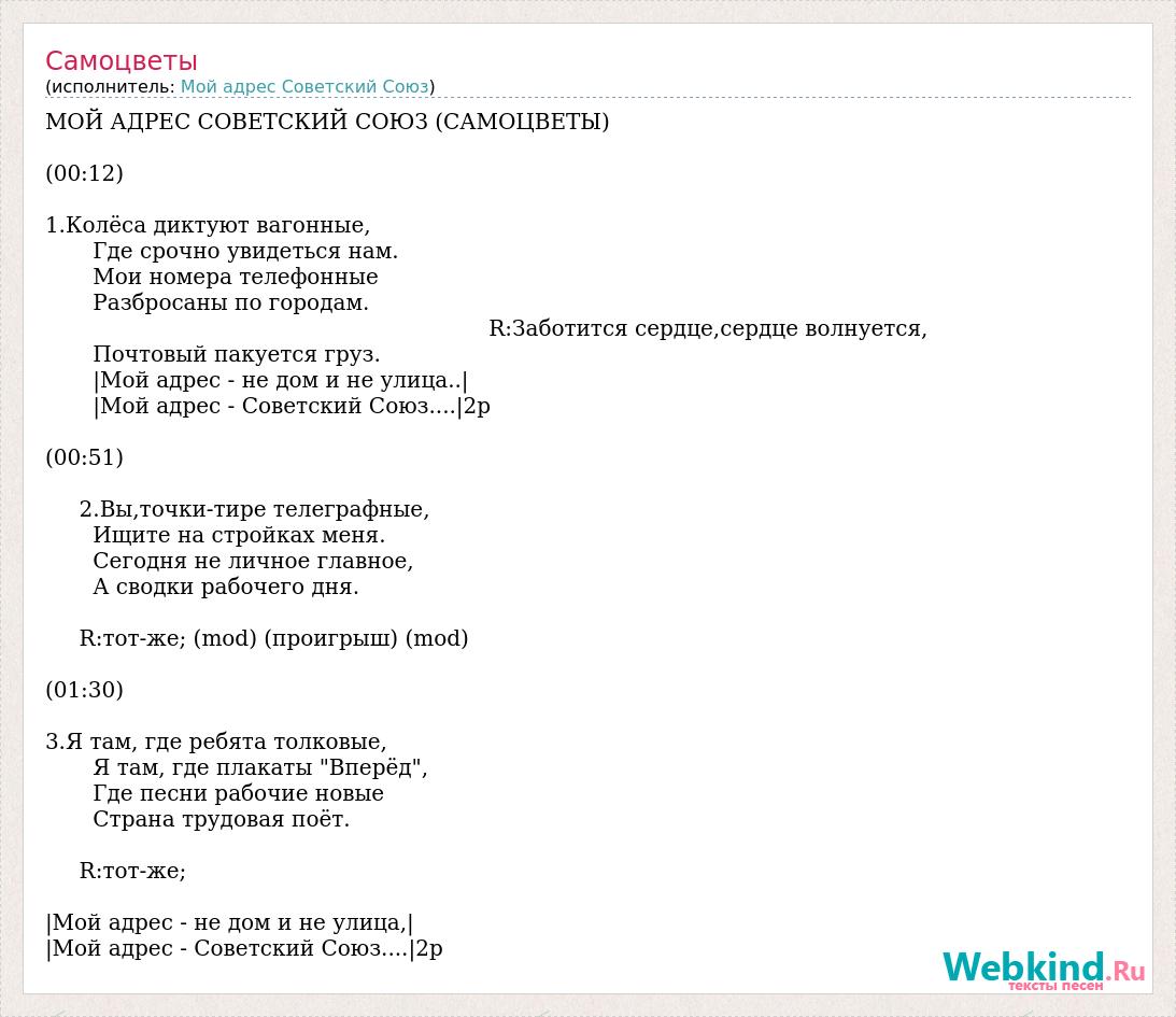 МОЙ АДРЕС СОВЕТСКИЙ СОЮЗ (САМОЦВЕТЫ)