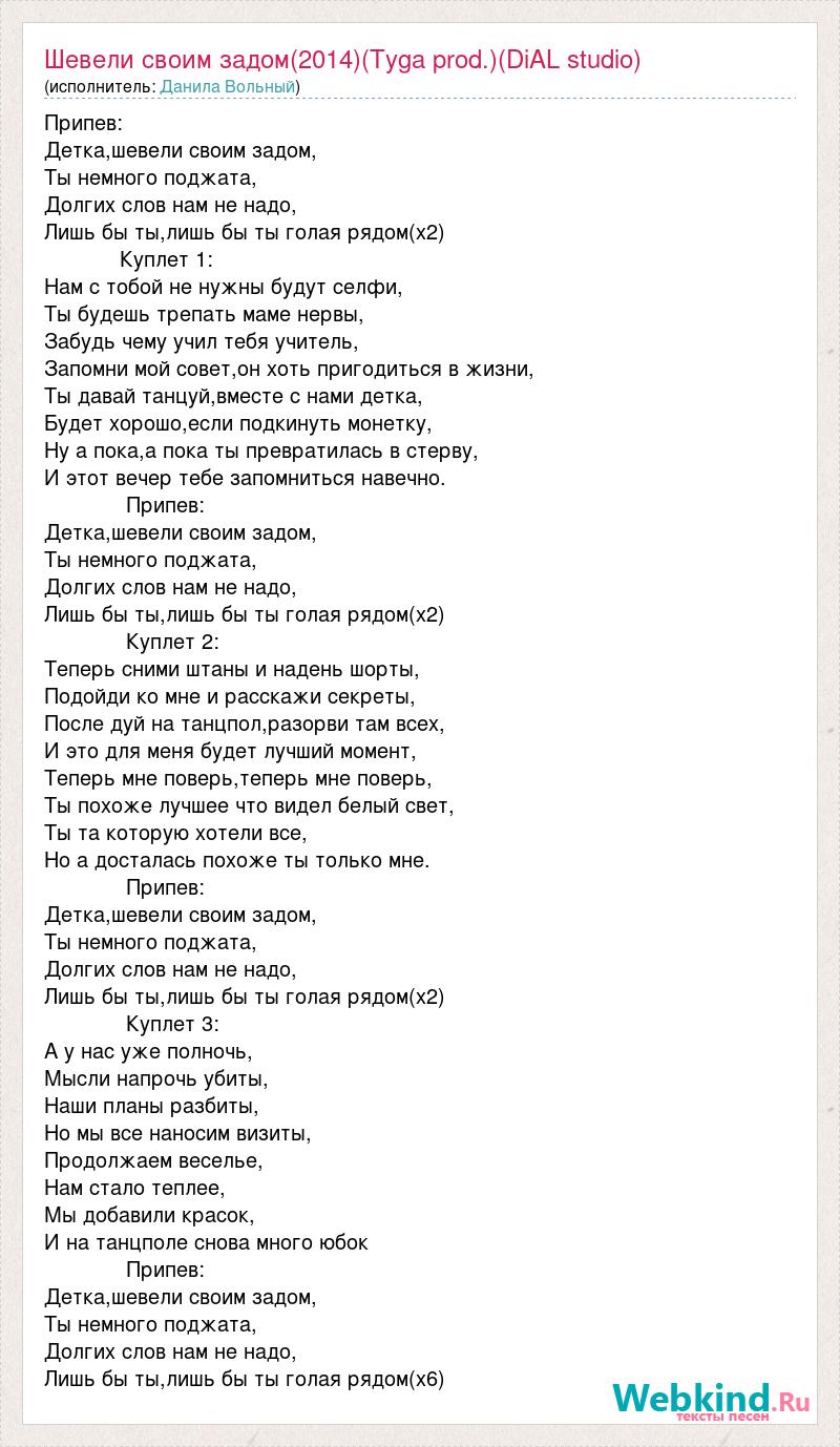 А как ты думаешь, о чем песня "Шевели своим задом(2014)(Tyga prod.)(DiAL studio)" ?