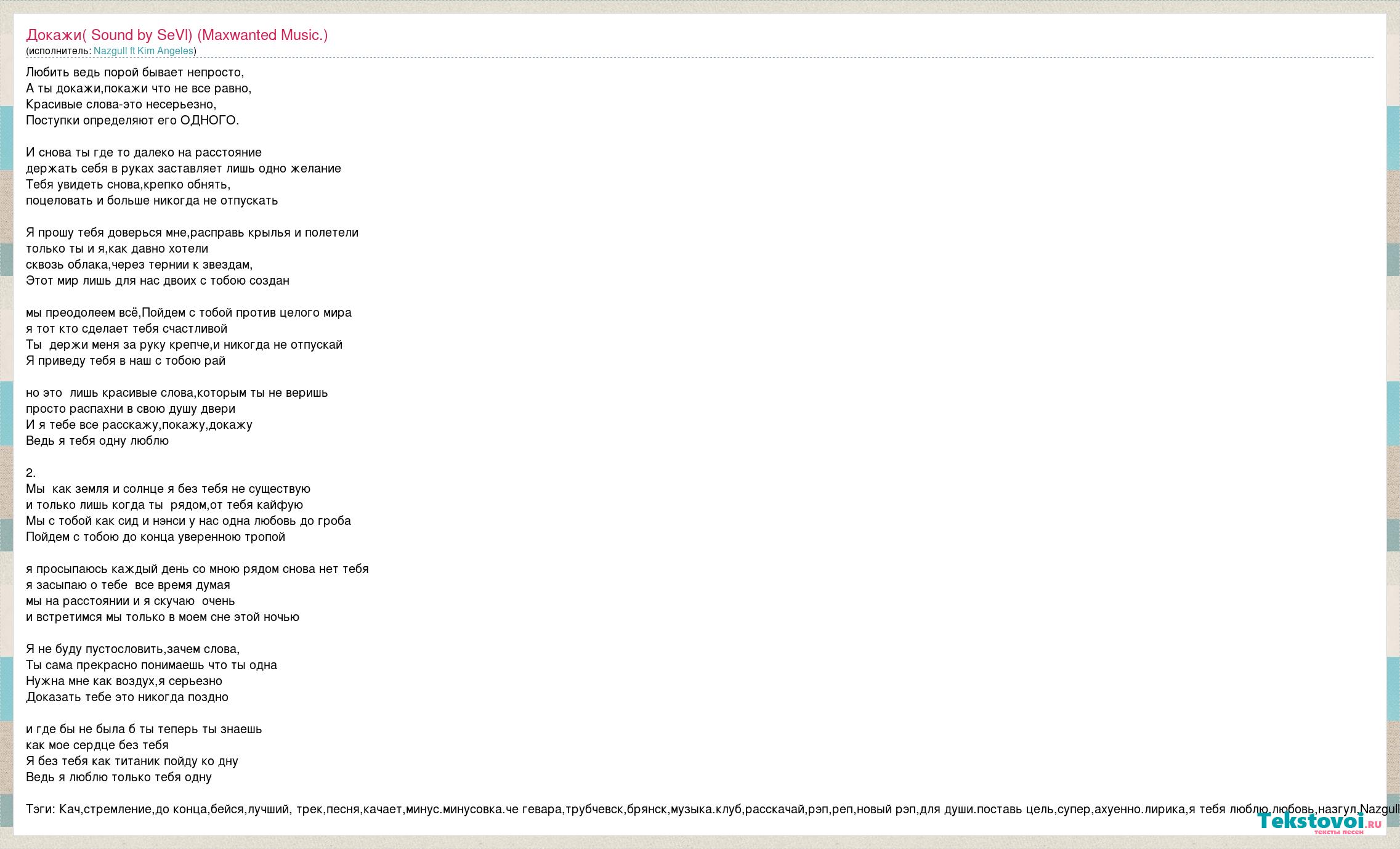 А как ты думаешь, о чем песня "Докажи( Sound by SeVl) (Maxwanted Music.)" ?