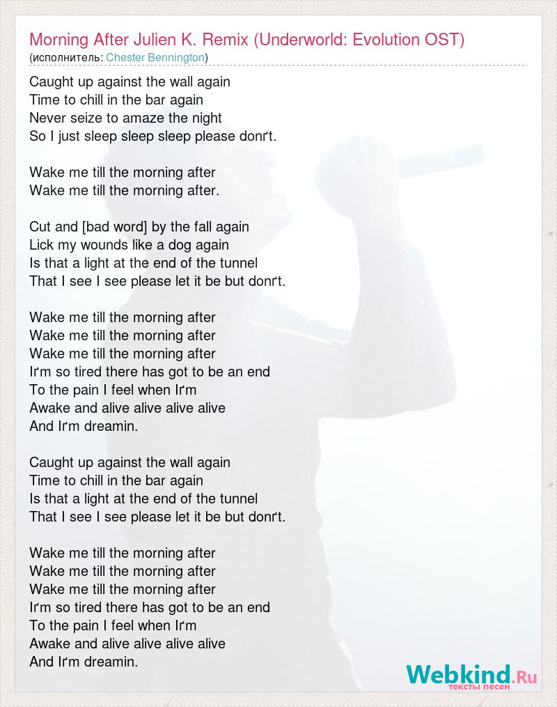 А как ты думаешь, о чем песня "Morning After Julien K. Remix (Underworld: Evolution OST)" ?
