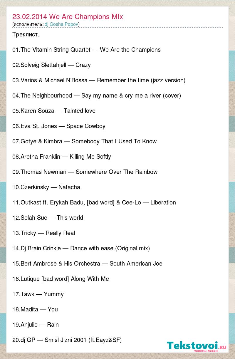 А как ты думаешь, о чем песня "23.02.2014 We Are Champions MIx" ?