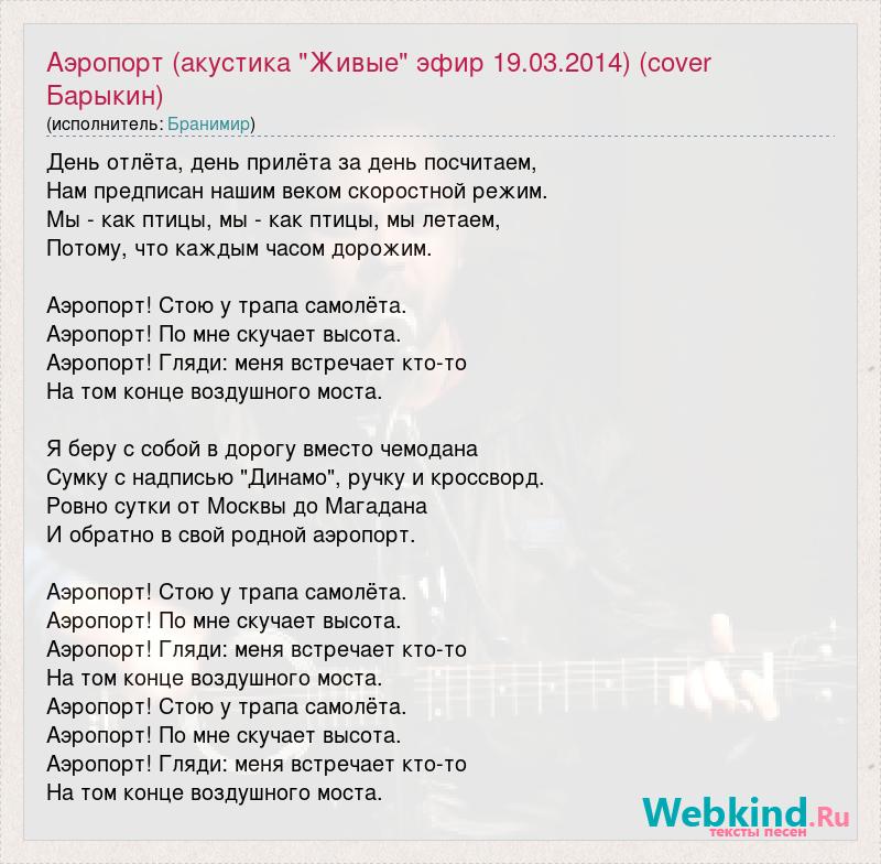 А как ты думаешь, о чем песня "Аэропорт (акустика "Живые" эфир 19.03.2014) (cover Барыкин)" ?