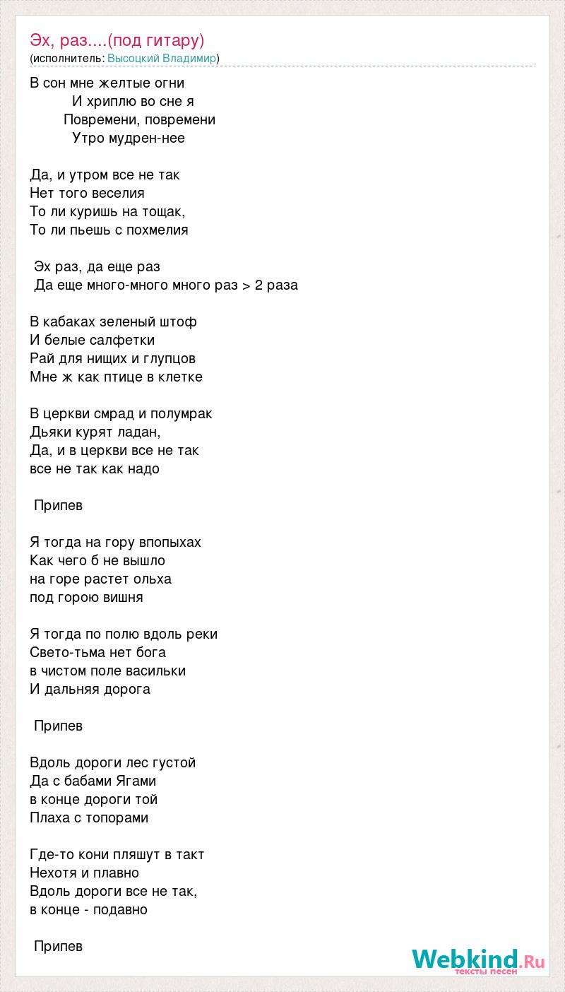 А как ты думаешь, о чем песня "Эх, раз....(под гитару)" ?