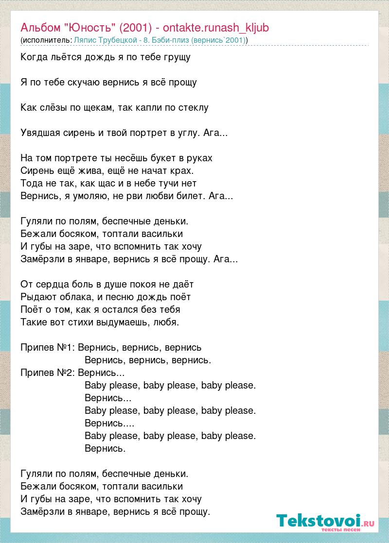Главная→Исполнители→Ляпис Трубецкой - 8. Бэби-плиз (вернись`2001)→Альбом "Юность" (2001) - ontakte.runash_kljub