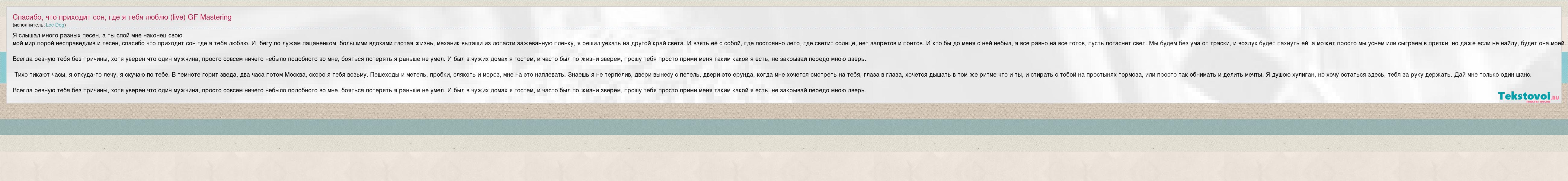 Спасибо, что приходит сон, где я тебя люблю (live) GF Mastering